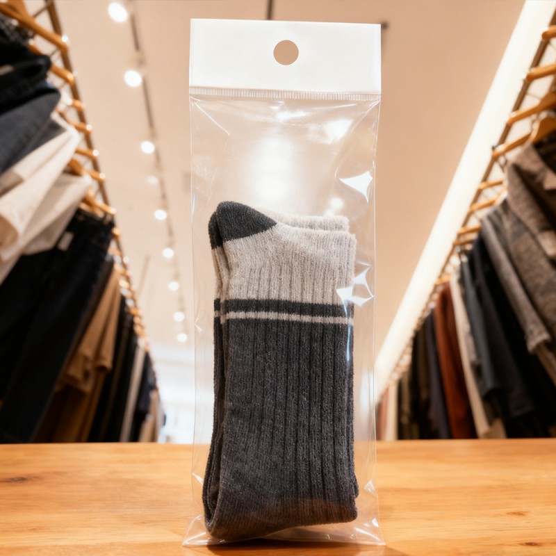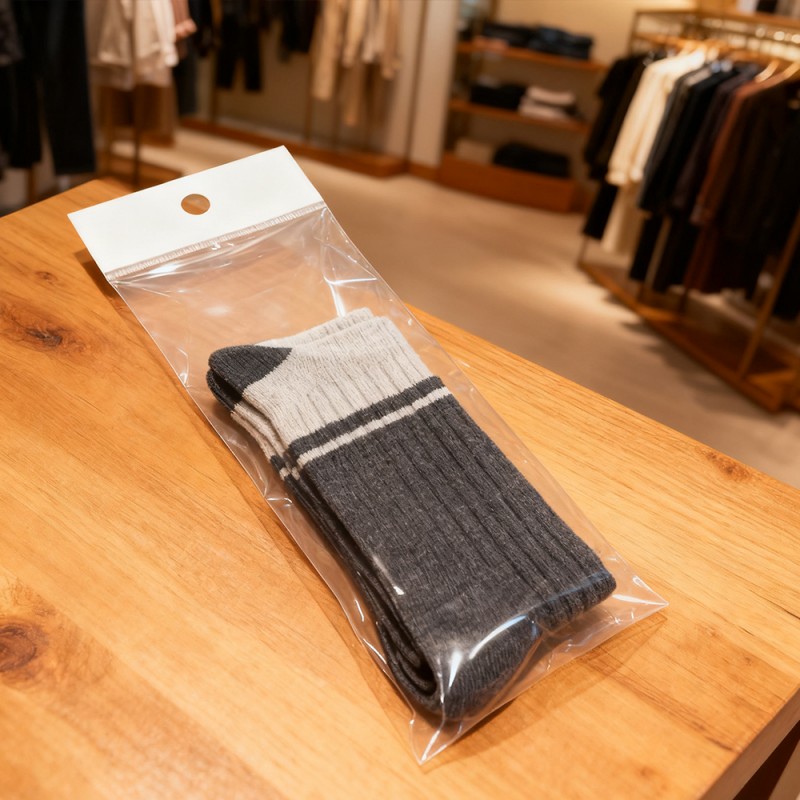 Apariencia transparente: Nuestro material BOPP tiene una alta transparencia, que puede mostrar el color, la textura y el diseño de la ropa sin deformarse. La superficie de alto brillo mejora el valor sensorial de la ropa, haciéndola destacar en entornos minoristas o de entrega de comercio electrónico. Superficies no impresas: las superficies patentadas no impresas evitan que la tinta se transfiera desde diseños impresos en etiquetas, marcas comerciales o prendas de vestir. Elimina el riesgo de manchas en tejidos delicados, ropa blanca o ropa de lujo, asegurando que los artículos lleguen al showroom en las mejores condiciones. Durabilidad: en comparación con las alternativas estándar de PE y PP, el material BOPP tiene una excelente resistencia a la tracción, a la perforación y al desgarro. Puede proteger la ropa del desgaste, daños por manipulación y factores ambientales durante el transporte y almacenamiento. Resistencia a la humedad y al polvo: la barrera impermeable protege la ropa de la humedad, el polvo y los contaminantes, manteniendo la integridad y limpieza de la tela. Esto es especialmente eficaz para el transporte a larga distancia o el almacenamiento en diferentes condiciones climáticas. Diseño personalizable: personalice las bolsas de embalaje según las necesidades de su marca, con opciones de tamaño, grosor y sellado ajustables (como sellado autoadhesivo, sellado térmico). Las opciones para rollos o bolsas individuales pueden acomodar procesos de embalaje tanto automáticos como manuales. También puede agregar cabezales de tarjetas para una visualización cómoda.