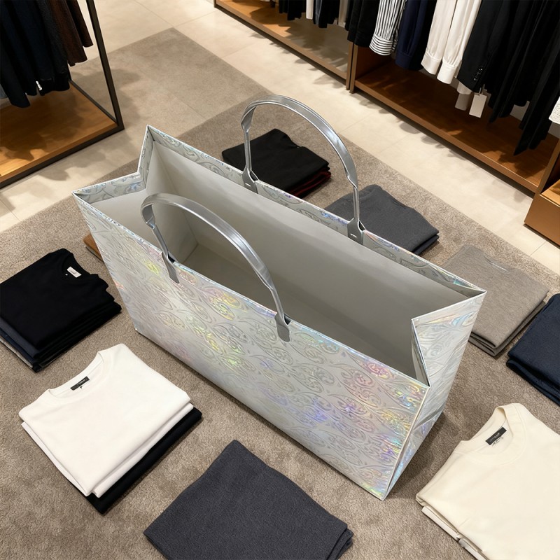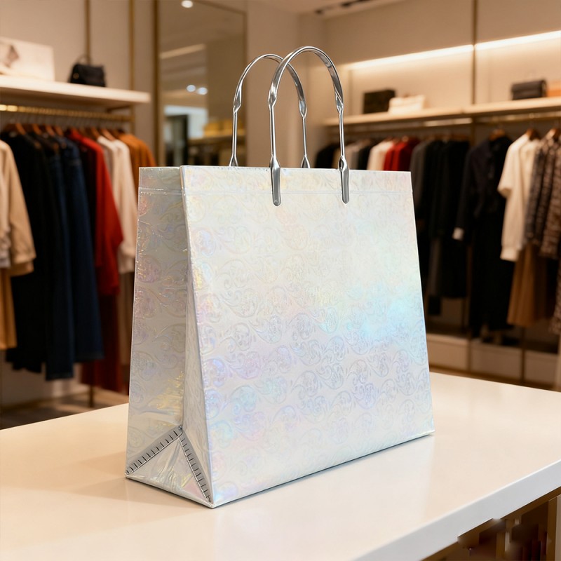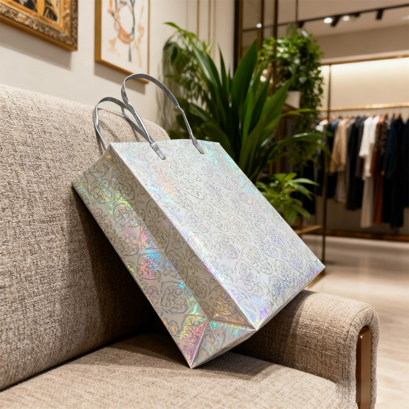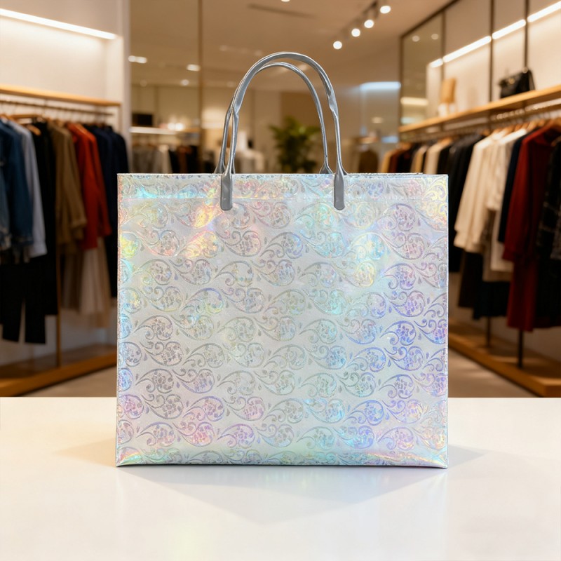 Superficie brillante: la película de purpurina está incrustada con finas partículas de purpurina de primera calidad que captan y reflejan la luz desde todos los ángulos, creando un brillo cautivador y multidimensional. Esto llama instantáneamente la atención y genera una sensación de emoción y celebración. Textura lujosa: a diferencia de la purpurina que se desprende, nuestra película laminada mantiene permanentemente su brillo bajo una capa protectora suave. Esto garantiza una experiencia de usuario limpia y ordenada al mismo tiempo que proporciona una sensación táctil cómoda. Diseño reutilizable: la combinación de un núcleo de papel resistente y una superficie laminada resistente hace que esta bolsa esté diseñada para durar. Su capacidad para mantener su brillo a lo largo del tiempo fomenta el uso repetido, convirtiendo a sus clientes en embajadores ambulantes de la marca mucho después de la compra inicial. Impresión exquisita: nuestro equipo de diseño puede diseñar patrones de acuerdo con sus requisitos y exhibirlos en el producto con nuestro sofisticado equipo y tecnología avanzada. Su logotipo y diseño se pueden aplicar con colores claros y vibrantes, creando un hermoso contraste con un fondo brillante para lograr el máximo conocimiento de la marca. Personalización personalizada: los clientes pueden cambiar colores, reemplazar manijas, agregar patrones específicos y personalizar tamaños según sus requisitos. Proporcione una flexibilidad extraordinaria para combinar los colores específicos de su marca y los requisitos funcionales para diferentes eventos.