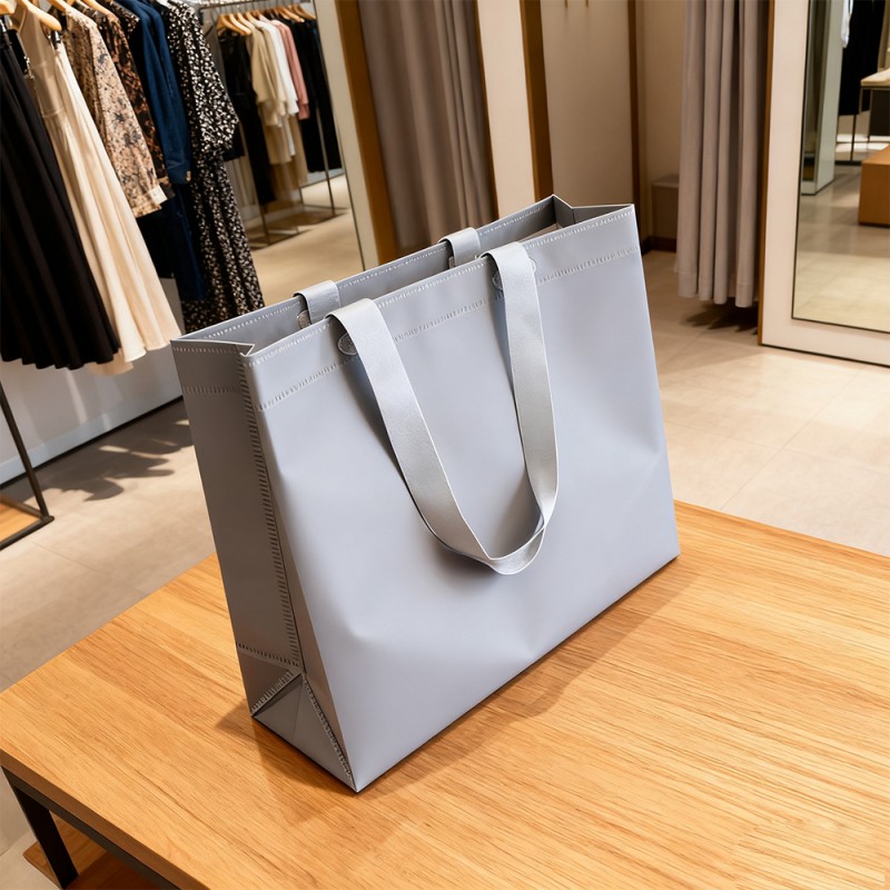 Estructura de tres capas: la capa exterior de BOPP proporciona una impermeabilización completa y una excelente compatibilidad de impresión. Proporciona excelente resistencia a la humedad, resistencia al desgaste y una apariencia hermosa. El papel Kraft especialmente tratado tiene una capa intermedia suave y duradera, que mejora su capacidad de carga manteniendo su apariencia natural y respetuosa con el medio ambiente. La capa interior de la película perlada crea un lujoso efecto de microluz al refractar la luz, mejorando el valor sensorial del producto. Excelentes propiedades físicas: la bolsa y el asa están conectados mediante ondas ultrasónicas, lo que garantiza un rendimiento confiable incluso si el contenido es pesado. La combinación estable de la estructura de tres capas evita la delaminación y mantiene la integridad estructural en diversas condiciones ambientales. La estructura de soporte inferior proporciona estabilidad autoportante y evita la deformación de la bolsa. Estos materiales han sido probados y pueden soportar diversas condiciones climáticas, lo que los hace adecuados para diferentes mercados y estaciones. Innovación medioambiental: El papel kraft se produce utilizando adhesivos biodegradables que cumplen con los requisitos medioambientales. Al combinar tinta respetuosa con el medio ambiente a base de agua con un proceso de producción que no utiliza adhesivos, se ha mejorado la tasa de recuperación del material y se han reducido las emisiones de carbono. Personalización de alta especificación: Brindamos servicios integrales de personalización. Con nuestra máquina de impresión por huecograbado de 10 colores totalmente automática, podemos exhibir perfectamente los exquisitos diseños de nuestros clientes en las bolsas. Las marcas comerciales y la información importante también se pueden resaltar mediante procesos como el estampado en caliente y la serigrafía. Las especificaciones, dimensiones y estilos de mango del producto respaldan totalmente la personalización del cliente.