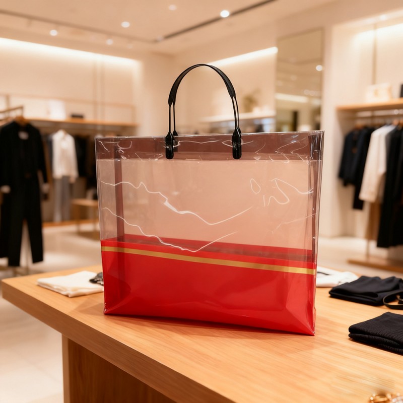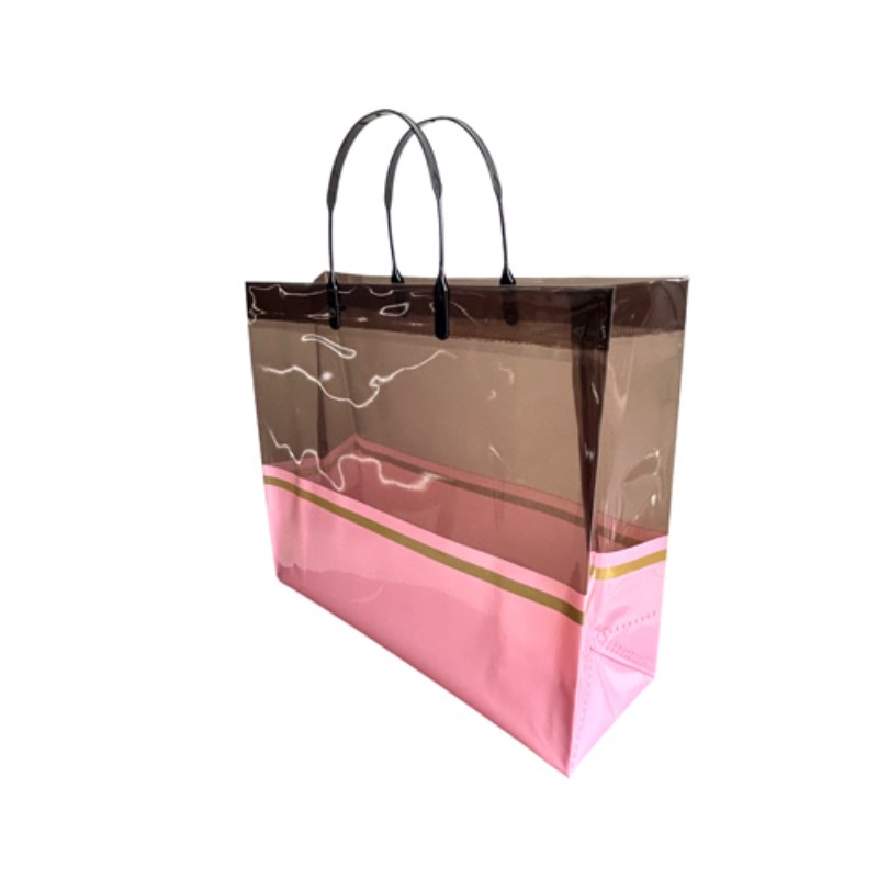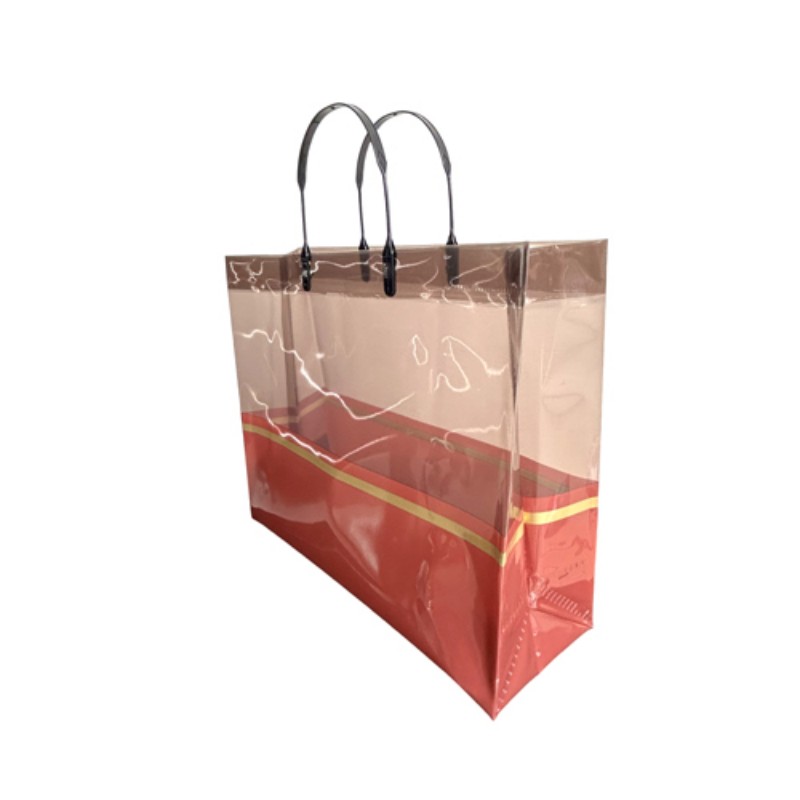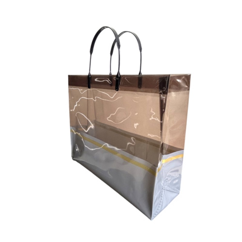 Boutiques minoristas y de moda: Ideal como bolsa de compras de lujo para ropa, accesorios y cosméticos. Mejora el valor percibido de la marca y mejora la satisfacción del cliente a través de su apariencia premium. Eventos y regalos corporativos: perfecto para empaquetar juegos de regalo, artículos promocionales o obsequios para eventos. La decoración de la banda dorada coincide con el tema de las marcas de alta gama, lo que la hace adecuada para la promoción corporativa. Uso diario y viajes: liviana y plegable, la bolsa sirve como una compañera elegante para ir al supermercado, viajes a la playa o salidas informales. Su transparencia permite una fácil identificación del contenido y es conveniente para el uso diario. Exposiciones y ferias comerciales: actúa como publicidad ambulante cuando se personaliza con elementos de la marca, atrayendo la atención mientras se distribuyen materiales o muestras. Ayuda a la visibilidad de la marca y a interactuar con clientes potenciales.